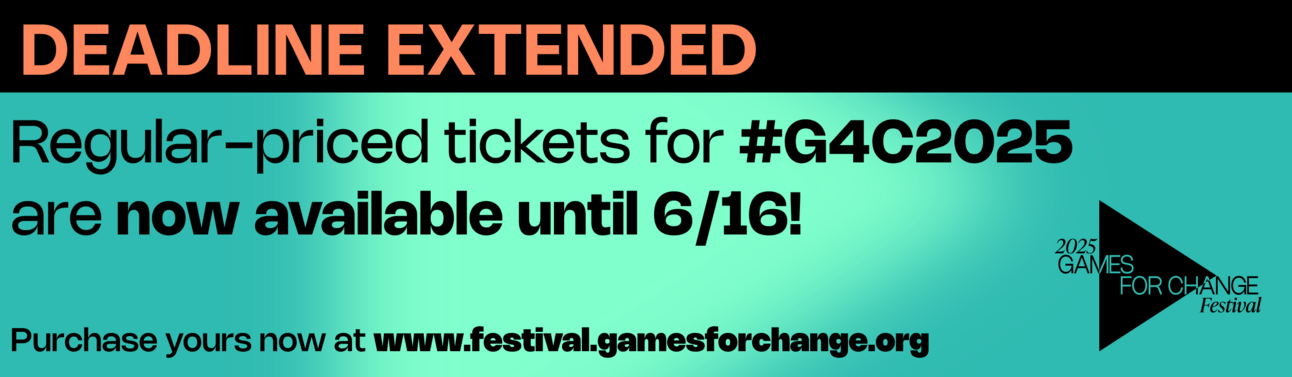 Great news! We've extended the deadline for regular-priced G4C2025 tickets to June 16th. This week, we also celebrated our 2025 Special Award Winners, including Dr. Rachel Kowert (Vanguard Award), PRELOADED (Industry Leadership), Amir Sarvat (Giving Award), Asi Burak (Hall of Change), and 1000xRESIST (Indie Breakout Award). Plus, we still have two free virtual sessions coming up - a book launch with gaming education pioneers and our first-ever G4C Stream-a-thon. Don't miss your chance to join us June 26-27 in NYC or tune in from around the world! Put down your Switch 2 and check this out.